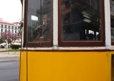 The next morning we did a whistle-stop tour of city highlights by boarding one of the bright yellow, wooden-panelled trams that, despite their venerable age, hurtle round corners and rumble up Lisbon’s many hills. We chose the best-known route of number 28, which despite the cloudy weather, offered tantalizing glimpses of red-tiled rooftops, graceful church spires, squares with imposing statues and the wide Tagus river.