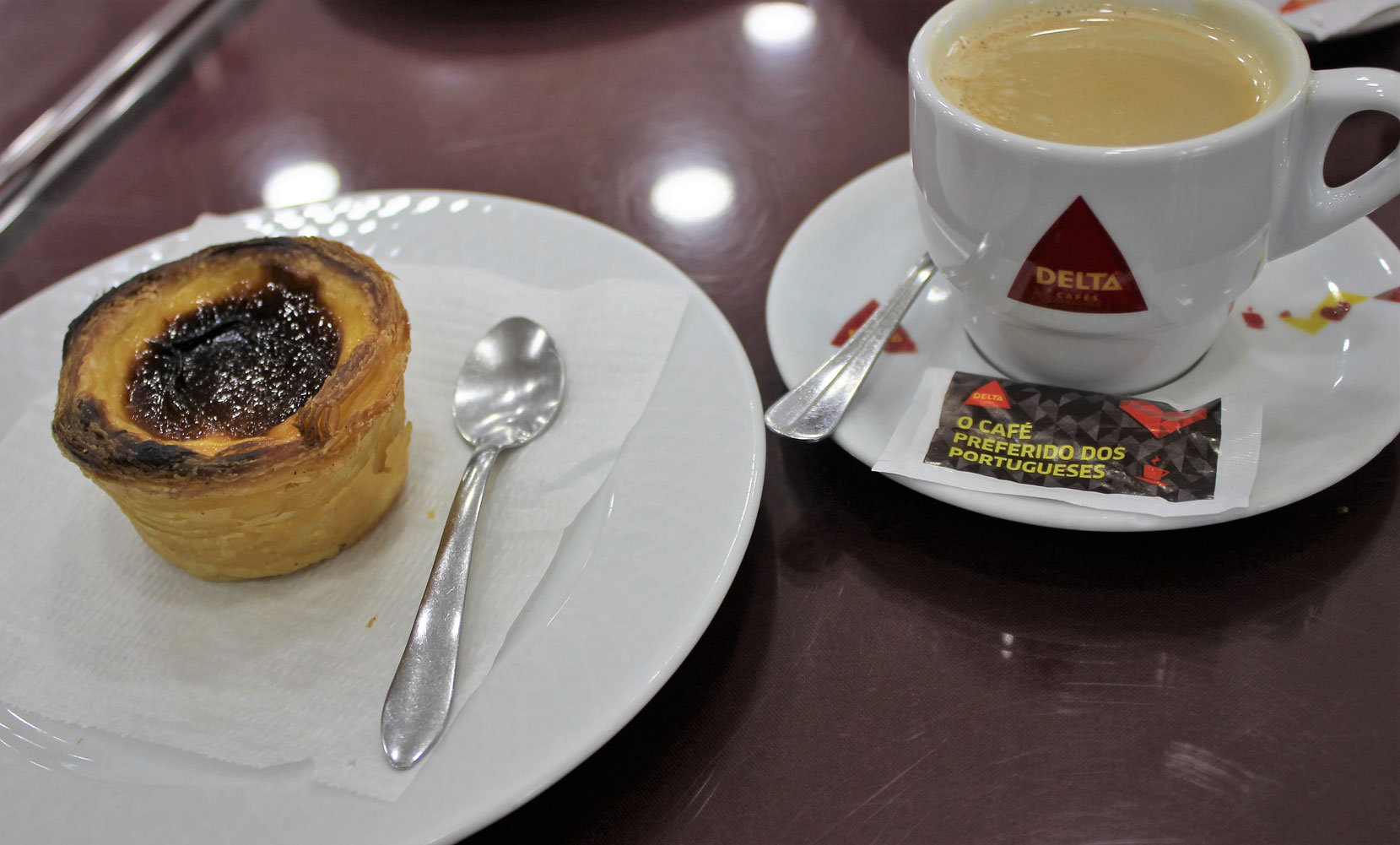The crispy pastry and egg custard was delicious, particularly with the extra packets of sugar and cinnamon tucked into the smart blue and white parcels.