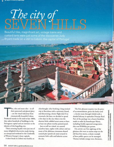 Beautiful tiles, magnificent art, vintage trams and custard tarts were just some of the discoveries Judy Bryant made on a visit to Lisbon, the capital of Portugal.