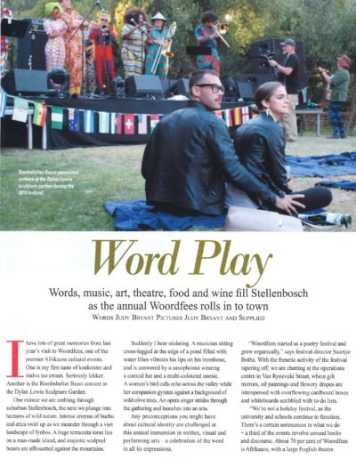 If you enjoy culture and creativity, the annual Woordfees festival in Stellenbosch offers something for everyone, writes Judy Bryant