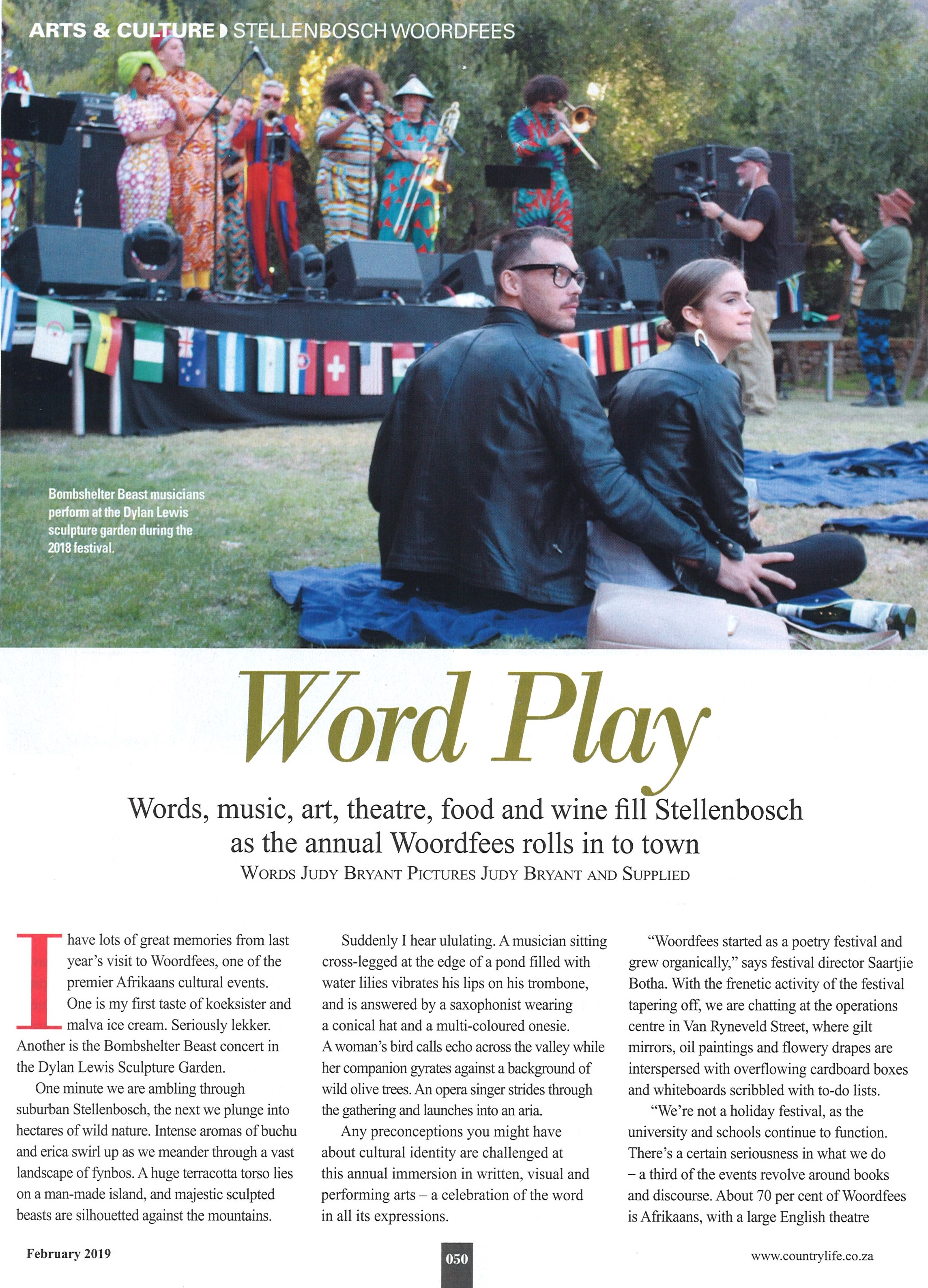 I’ve got lots of great memories from last year’s visit to Woordfees, the premier Afrikaans event on the cultural calendar. One was my first taste of koeksister and malva tart ice cream. Seriously lekker. Another was the Bombshelter Beast concert in the Dylan Lewis sculpture garden.