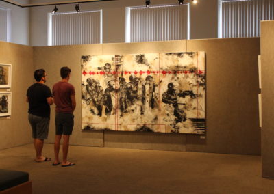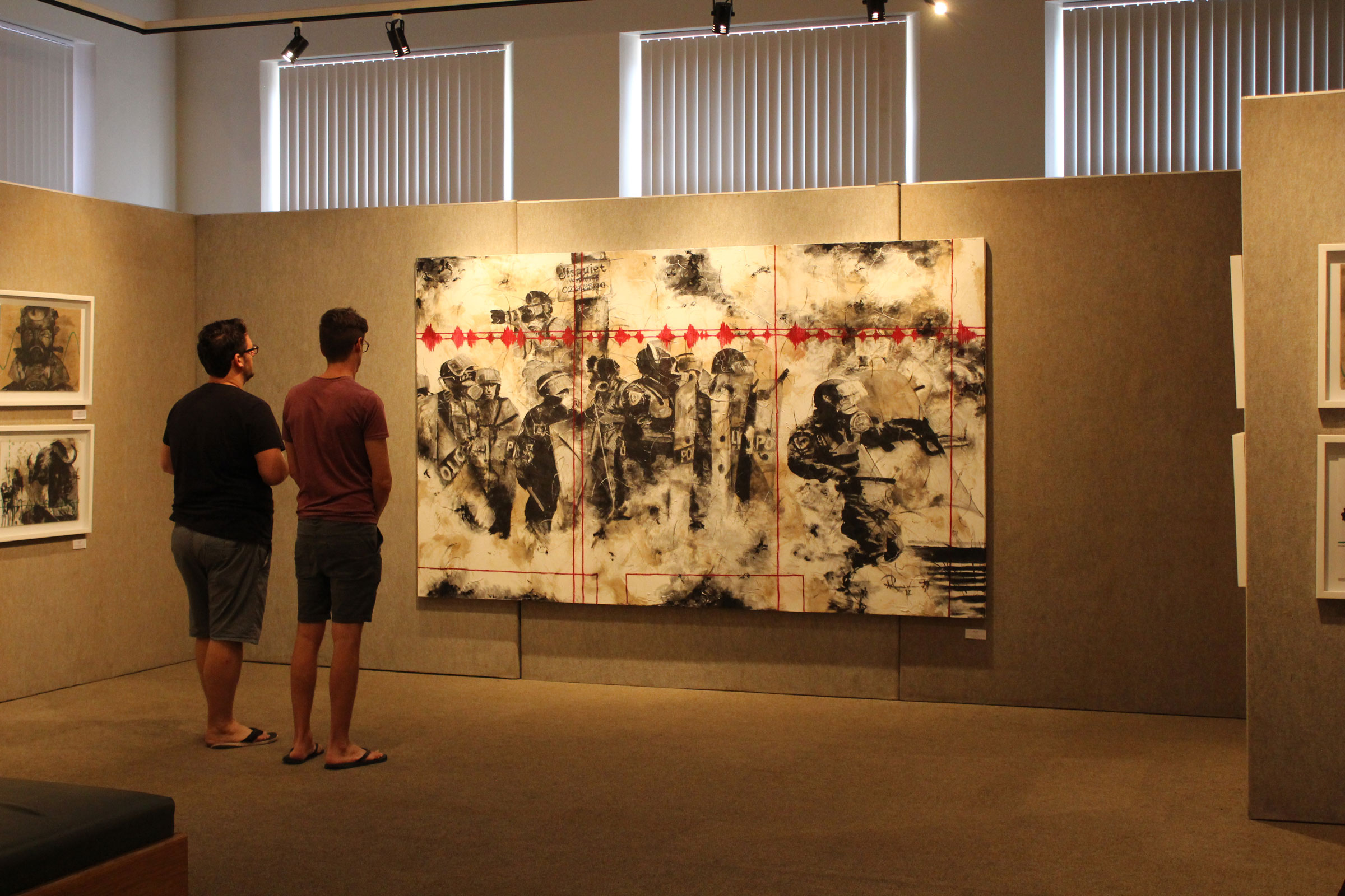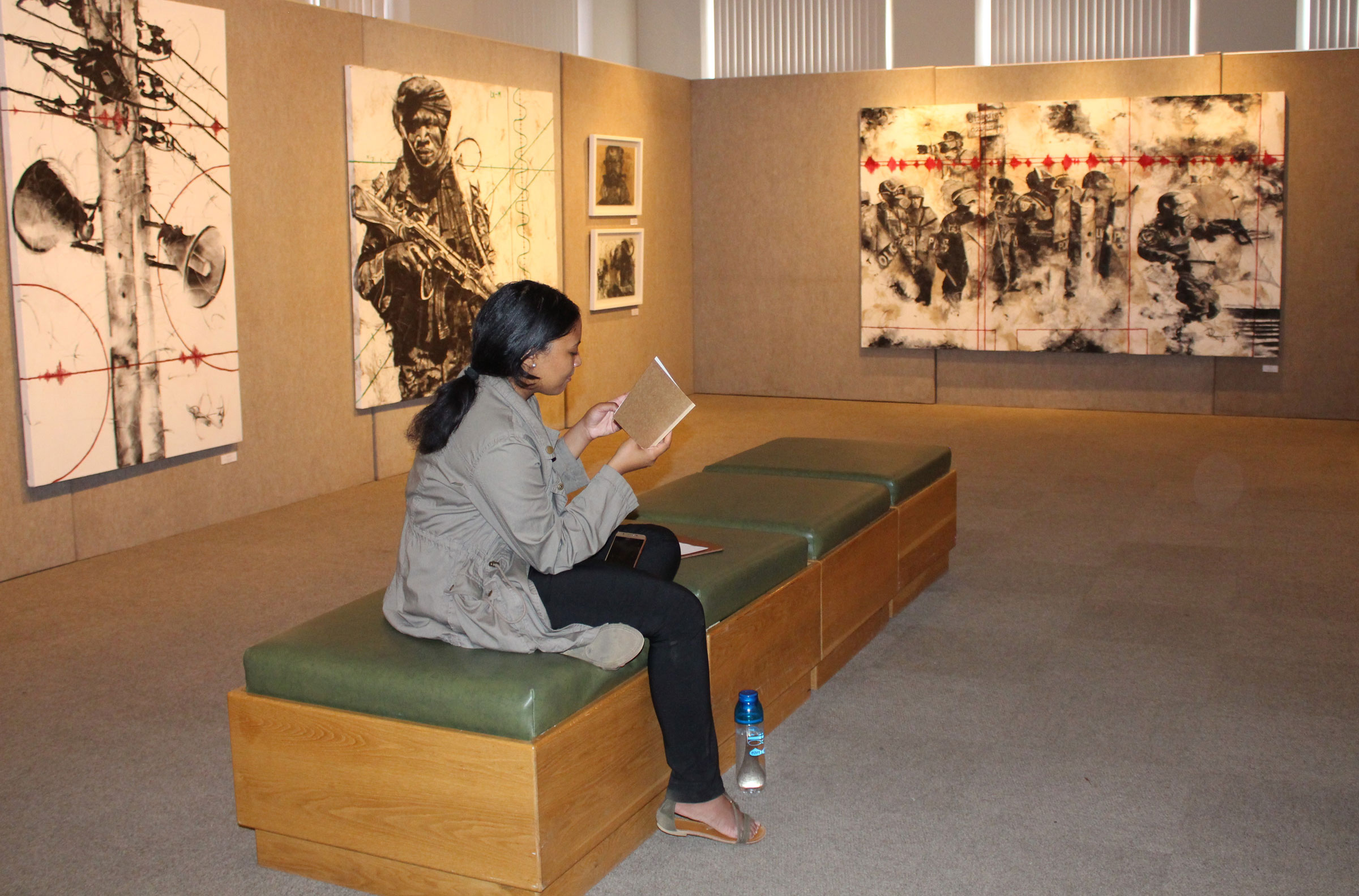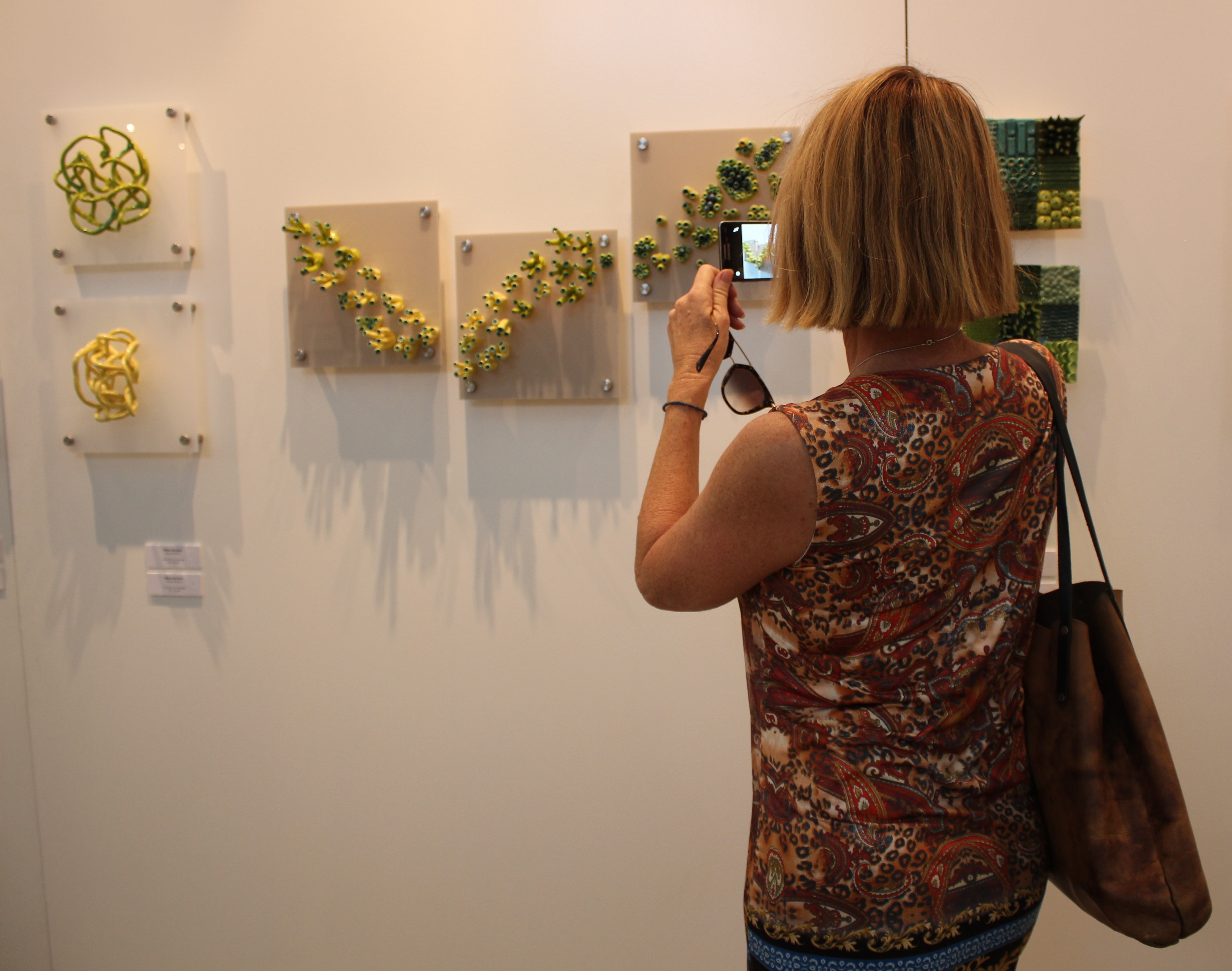 Wilna Strydom from Pretoria showed lustrous gold ceramic vessels, while printmaker Thina Dube created paper embedded with plant material and string, which he used as a base for his drawing and painting.