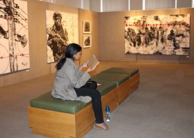 It took Emma five years to create her installation, which included 101 handmade artists’ books ‒ filled with drawings, prints and collages ‒ with the book covers made from wooden parquet floor blocks.