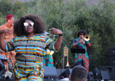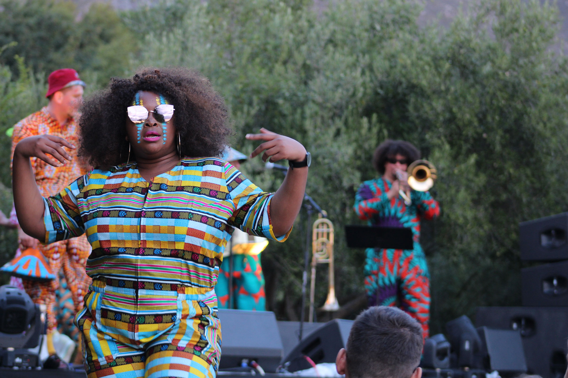 Suddenly I heard ululating. A musician sitting cross-legged at the edge of a pond filled with water lilies vibrated his lips on his trombone and was answered by a saxophonist wearing a conical hat and a multi-coloured onesie. A woman’s bird calls echoed across the valley while her companion gyrated against a background of wild olive trees. An opera singer strode through the gathering and launched into an aria.